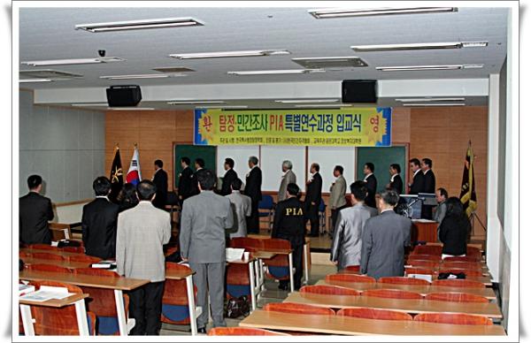 2008년 4월 19일 서울광운대학교 정보복지대학원 한울관에서 PIA 특별연수과정 19기 입교식을 하게 되었습니다. 모든 입교생들께서 8주간의 이론 및 실기교육을 무사히 마치고 전원 수료식에서 뵐수 있기를 바랍니다. 원본사진을 원하시는 입교생들께서는 저희 학회로 연락을 주시면 원본사진을 보내드리겠습니다. |