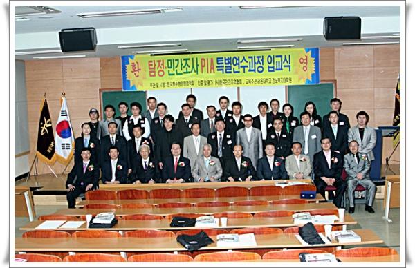 2008년 4월 19일 서울광운대학교 정보복지대학원 한울관에서 PIA 특별연수과정 19기 입교식을 하게 되었습니다. 모든 입교생들께서 8주간의 이론 및 실기교육을 무사히 마치고 전원 수료식에서 뵐수 있기를 바랍니다. 원본사진을 원하시는 입교생들께서는 저희 학회로 연락을 주시면 원본사진을 보내드리겠습니다. |
