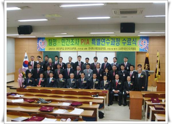2008년 10월25일 PIA 특별연수과정 3개월간의 이론 및 실기교육을 무사히 마치고 PIA 20기 특별연수과정 수료식을 하였습니다. 많은 내.외빈 및 그동안 교육을 담당하신 지도교수님들께서 참석하시어 자리를 빛내 주었습니다. 이번에 수료하시는 PIA20기 여러분의 건투를 빕니다. |
