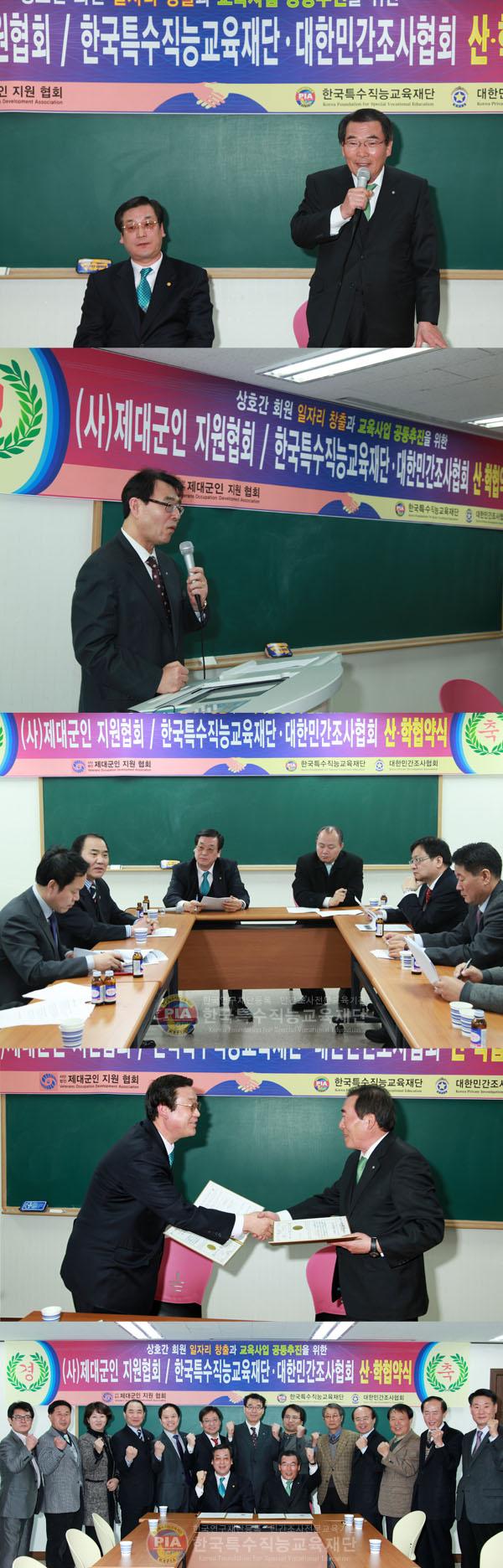 ![]() ![]() 상호간 회원 일자리 창출과 교육사업 공동 추진을 위한 (사)제대군인 협회와 한국특수직능교육재단,대한민간조사협회 산학협약식이 2012년 3월 13일 대민협 회의실에서 이루어졌습니다. |
