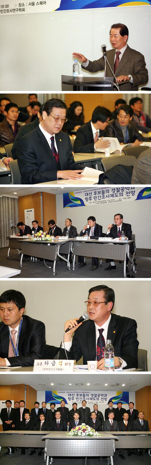 ![]() ![]() 2012년 12월 7일 금요일 서울스퀘어에서 한국경찰학회와 대한민간조사연구학회 주관 추계 공동학술 세미나가 성황리에 거행되었습니다. 여러 전문가님들의 고견을 잘 청취한 소중한 시간이었으며 앞으로 민간조사 분야의 무궁한 발전 기원하겠습니다. |