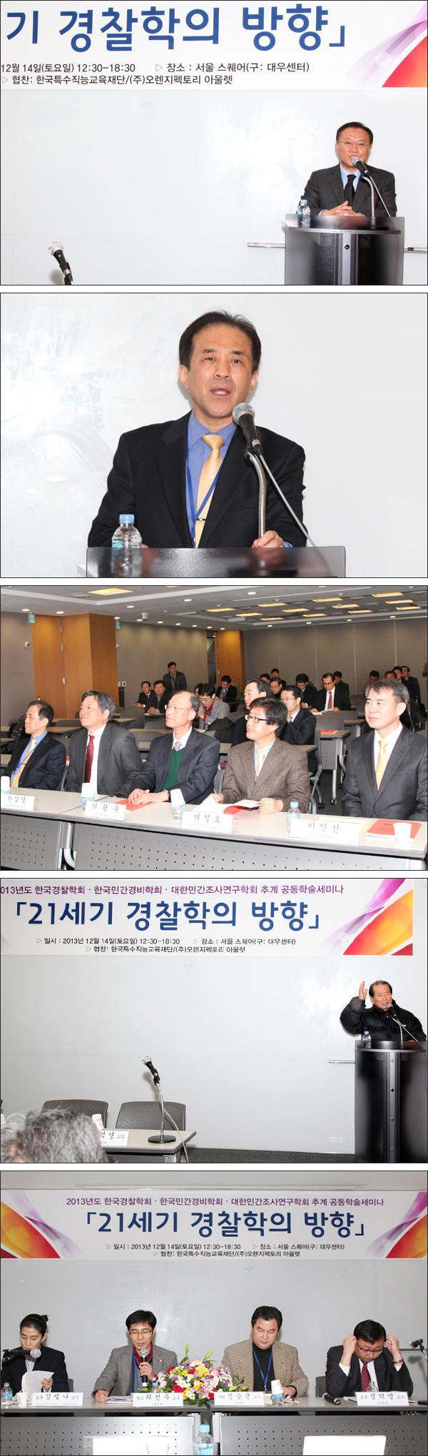2013년 12월 14일 토요일 서울스퀘어에서 한국경찰학회와 대한민간조사연구학회 주관 추계 공동학술 세미나가 성황리에 거행되었습니다. 여러 전문가님들의 고견을 잘 청취한 소중한 시간이었으며 앞으로 민간조사 분야의 무궁한 발전 기원하겠습니다. |