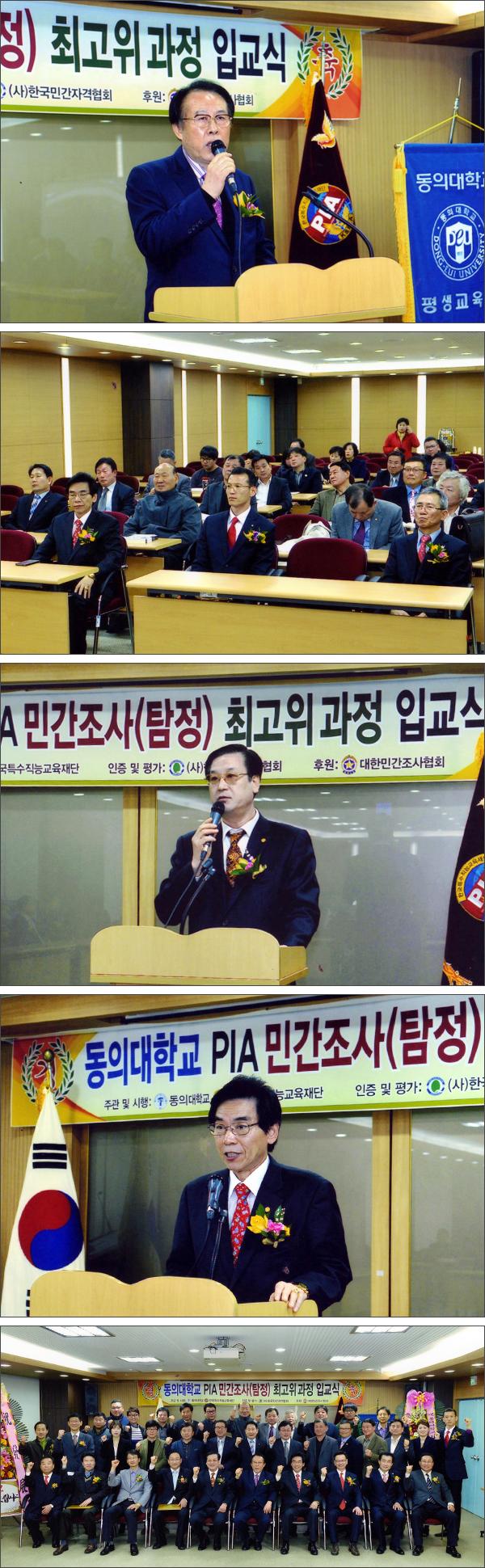 ![]() ![]() 2015년 3월 19일(목) 오후 6시 동의대학교 지천관 세미나실에서 PIA 민간조사(탐정) 제55기 최고위 전문가과정 입교식이 성황리에 개최되었습니다. 입교하신 교육생 여러분께 축하의 말씀을 올리고 멋진 미래를 기원합니다. 참석해주신 내외빈 여러분께도 깊은 감사의 말씀을 올립니다. |