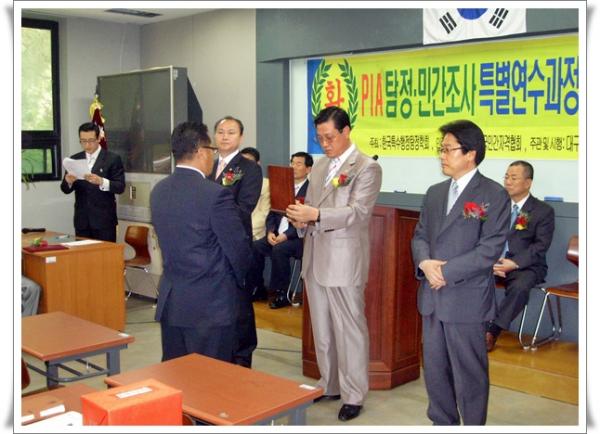 2008년 5월 31일 PIA 18기 대구산업정보대학 특별과정 8주간의 이론 및 실기교육을 무사히 마치고 PIA18기 특별과정 수료식 하였습니다. 많은 내 외빈 및 그동안 교육을 담당하신 당 학회 지도 교수님들이 참석하시여 자리를 빛내 주었습니다. 앞으로 PIA18기(영남2기) 여러분들의 건투를 빕니다. |