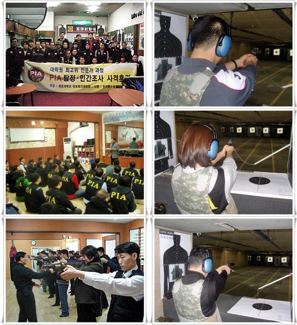 ![]() ![]() PIA 21기 무도교육 과 사격교육. 2월 8일 석촌동 합기도 체육관에서 무도교육 과 사격이론교육을 한 후 잠실 롯데월드 실탄사격장에서 사격교육을 무사히 마쳤습니다. 앞으로 실탄사격연습을 원하시는 회원은 잠실 롯데월드 실탄사격장에서 PIA 신분증을 지참하시면 특별할인을 받을수 있습니다. ※ 사격 사진 원본을 원하시는 분은 학회로 연락 주시면 메일로 보내드리도록 하겠습니다. 하지만 사격 사진은 학회 직원이 직접 사진 찍을수 없어 조교님이 찍어주셨습니다. 대부분 보시는 것과 비슷한 옆모습, 뒷모습뿐입니다. 이해해 주시기 바랍니다. |