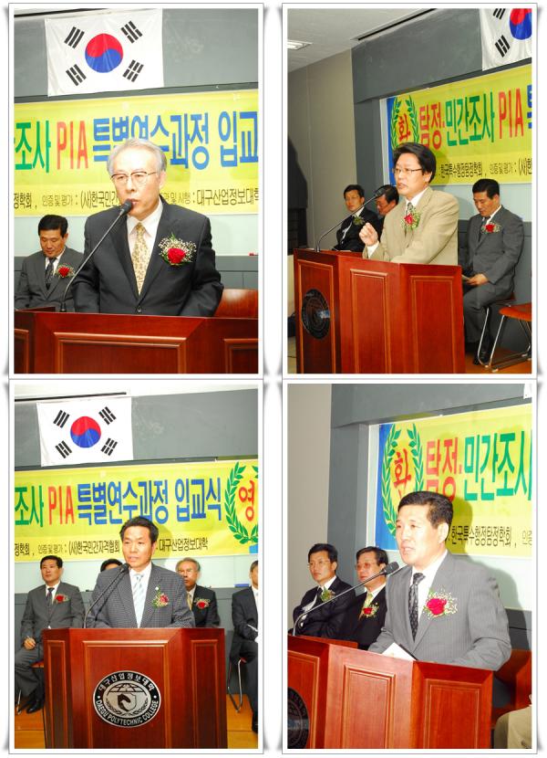 ![]() ![]() 영남지역의 경찰행정학의 메카 대구산업정보대학에서 2009년 5월 29일 탐정.민간조사 PIA 자격취득을 위한 최고전문가과정 입교식을 하였습니다. 이번 입교식은 영남지역에서의 3번째 PIA교육이어서 영남지역에서는 이번 교육을 더더욱 기대를 하고 있습니다. 내. 외빈 및 당 학회 임원. 교수님들과 PIA 선. 후배님들이 입교식 축하를 위해 많이 참석하였으며 성황리에 입교식 행사를 마치고 기념촬영을 하였습니다. |