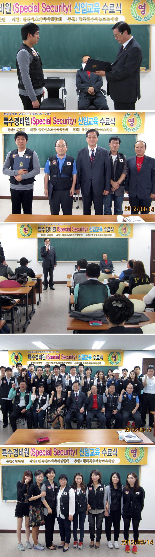 ![]() ![]() 2012년 9월 14일 금요일 특수경비 9차 수료식이 거행되었습니다. 모든 수료생 여러분의 알찬 미래를 기원하겠습니다. |