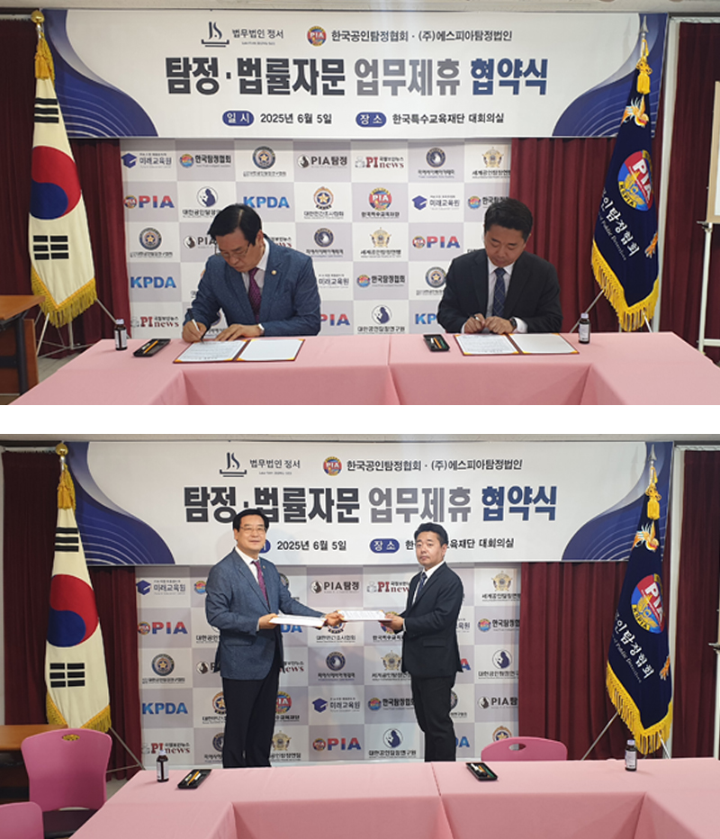 ![]() ![]() ![]() ![]() ![]() 2025년 6월 5일 법무법인 정서와 탐정 관련 업무 협약 체결 |