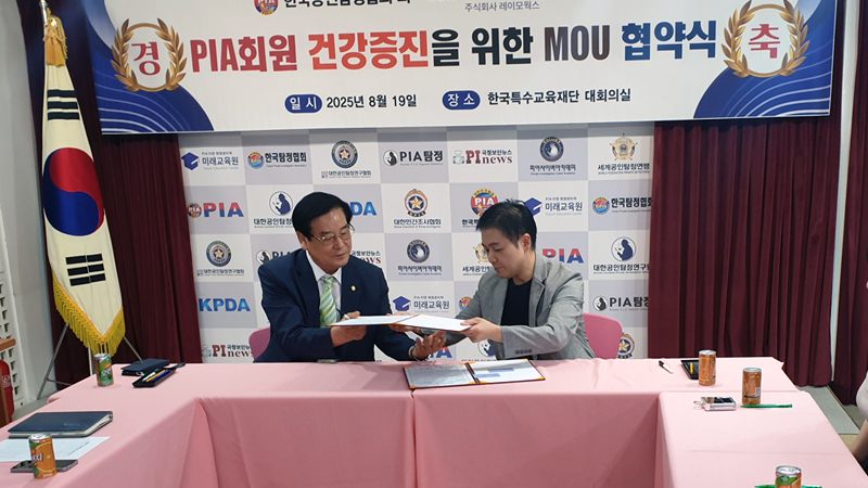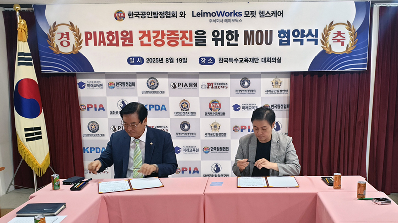 ![]() ![]() ![]() ![]() 2025년 8월 19일 한국공인탐정협회와 주식회사 레이모웍스 PIA회원 건강증진을 위한 MOU 협약 체결 |